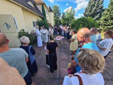 Nach der Segnung der Schul- und Kitakinder für das neue Schuljahr am Ende des Gottesdienstes segnete Pater Heribert unsere beiden frisch renovierten Räume im Kapellenbau - den Don-Bosco-Raum, unseren Raum für Erstkommunionvorbereitung und Kinderkirche und den Dominikusraum, der nun neben seiner Funktion als Nebensakristei zu Begegnungen einlädt.