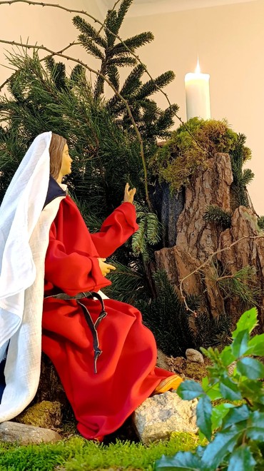 Auch in diesem Jahr will uns unsere Wandelkrippe durch den Advent begleiten. Nachdem wir in den vergangenen Jahren schon oft das Evangelium des entsprechenden Adventsonntags als Grundlage für die Gestaltung genommen haben, sind es in diesem Advent die Lesungen aus dem Buch Jesaja. Dabei soll die Gestaltung nicht nur die Lesung illustrieren, sondern uns nachdenklich machen und zum Handeln inspirieren.